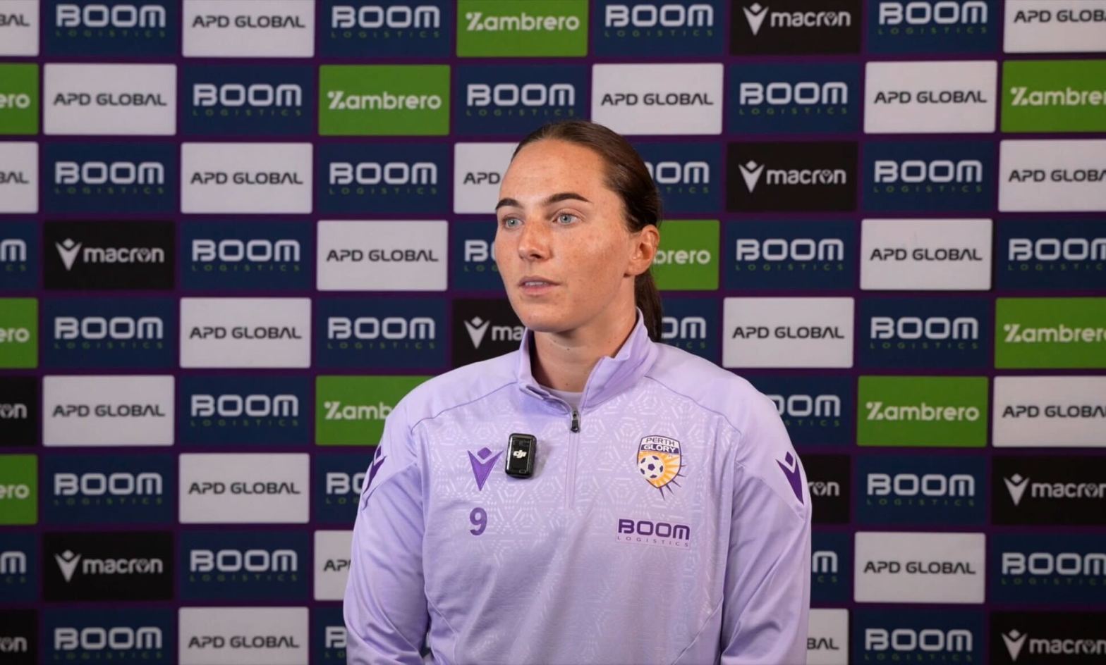 Above: Gabby Hollar speaks to the media. Image: Perth Glory.