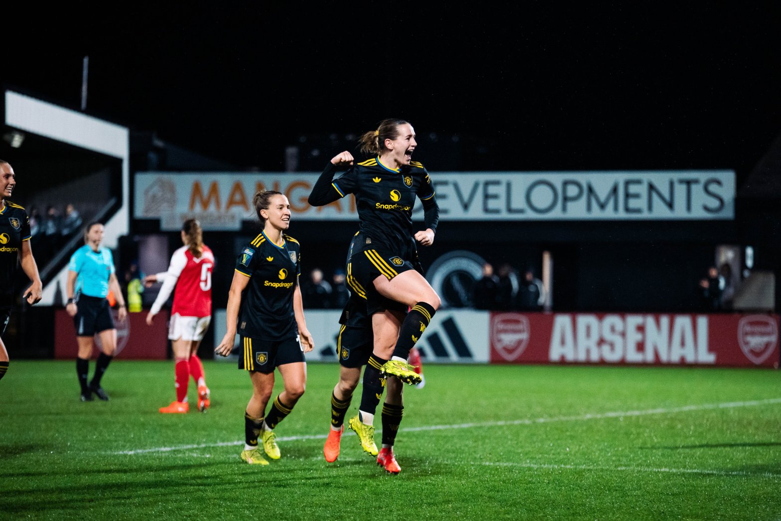 Arsenal 0-1 Manchester United By Emme Fortnam (21/1/26) Above: Terland celebrating her goal Photo: Manchester United FC Elisabeth Terland’s first half goal was enough to secure Manchester United’s place in the Subway Cup final, as they visited Meadow Park. The Action The game started with a promising run from Olivia Smith, who crossed for FridaContinue reading “Terland goal sees United into Subway Cup final”