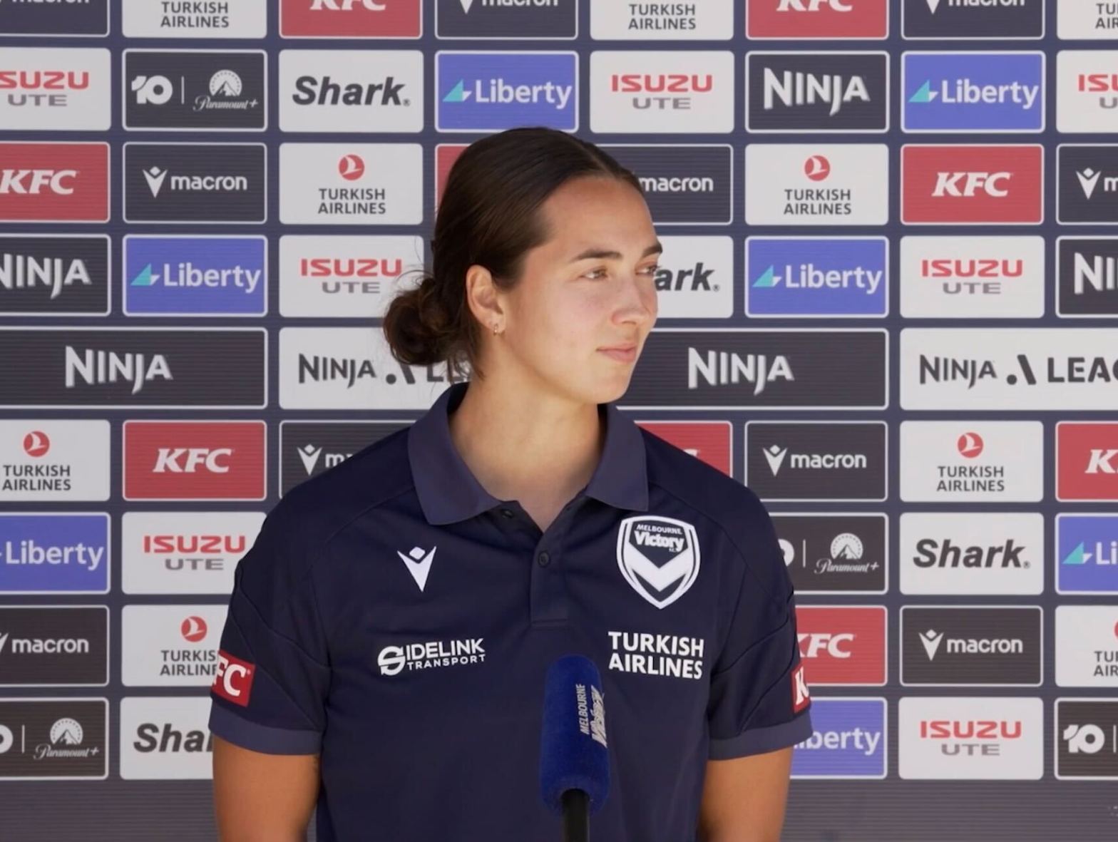 Above: Kennedy White speaks to the media. Image: Melbourne Victory. By Isabelle Campbell (14/11/25). Melbourne Victory will finally run out at the Home of the Matildas this weekend, with Head Coach Jeff Hopkins and hat-trick hero Kennedy White speaking ahead of Saturday’s clash with the Central Coast Mariners. The Round three match up will beContinue reading “White and Hopkins “Excited” for Home Opener”