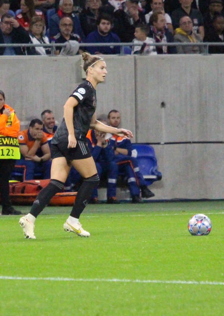 The Germans then created a flurry of opportunities – Khajeh Doorsan put Fridolina Rolfo thorugh, but the Swedish international ballooned her shot over the bar. Minutes afterwards Rolfo combined with Pernille Harder, who was kept quiet all evening, but a crunching challenge from Kheira Hamraoui cleared the danger.