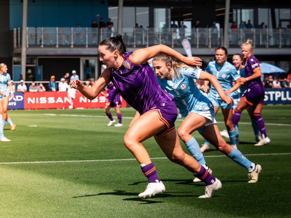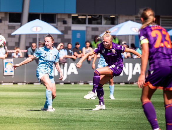 As the half approached its latter stages, Newcastle stepped up the pressure and forced regular corners. Lorena Baumann’s and Copus-Brown’s balls into the box were dangerous, but the visitors couldn’t quite find the right key to unlock the Perth defence. They needed to be that bit more pacier with their passing in and around the box.