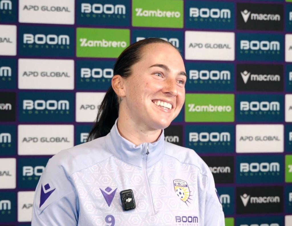 Above: Gabby Hollar speaking to the media. Image: Perth Glory.