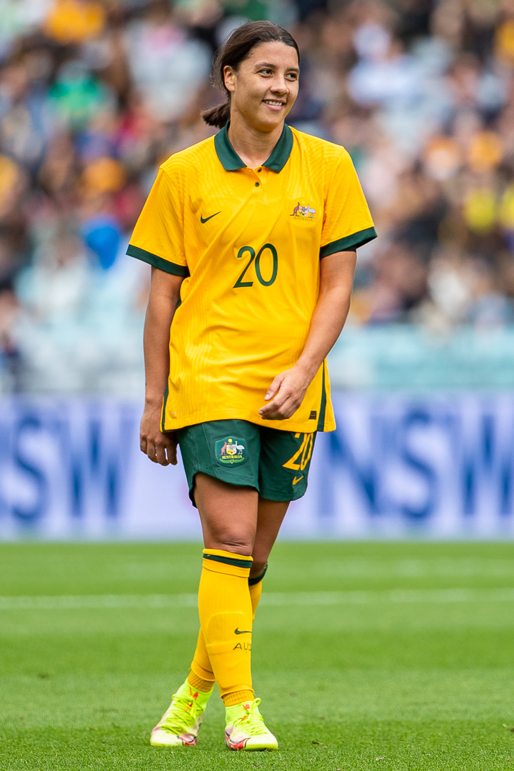 Previous Image Next Image sam-kerr-joseph-mayers-1 SYDNEY, AUSTRALIA – NOVEMBER 27: Matildas V USA at Stadium Australia, on November 27, 2021 in Sydney, Australia.
