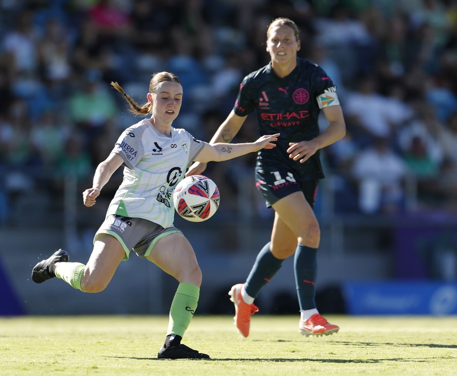 Canberra United 1-1 Melbourne City by Alyce Collett (1/3/25) Above: Canberra United’s Bethany Gordon (white shirt) looks to make the pass under the watchful eye of Melbourne City’s Rebekah Stott today. Photo: Canberra United. A fascinating match in the nation’s capital has seen Canberra United and Melbourne City play out a one-all draw. A TaylorContinue reading “City equal record as Canberra boost Finals hopes”