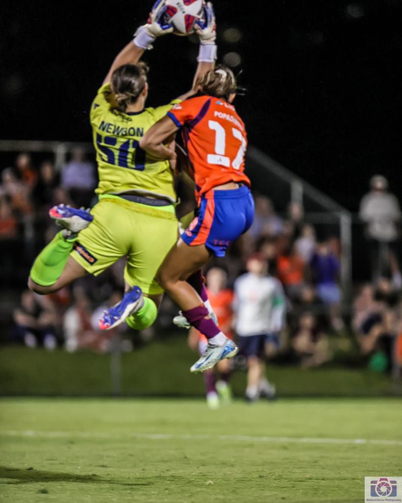 Brisbane Roar 2-0 Melbourne Victory by Isabelle Campbell (8/1/25) Above: Melbourne Victory goalkeeper Courtney Newbon engaged in an aerial battle with Brisbane Roar’s Evdokiya Popadinova. Photo: Richard Haines / Front Page Football. Brisbane Roar clinched a huge three points in the battle of second against third at Perry Park today thanks to a brace fromContinue reading “Kuilamu brace seals vital win for Roar”