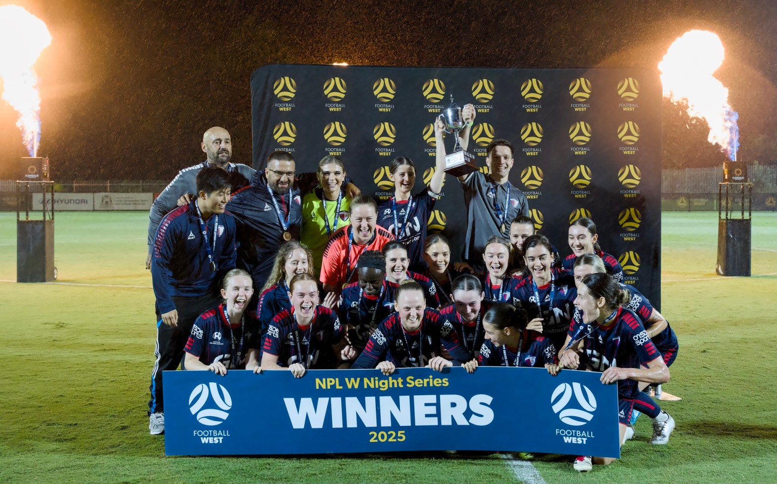 Perth SC 0-1 Balcatta Etna by Ben Gilby (15/3/25) Above: Balcatta Etna lift the NPLW WA Night Series trophy last night. Photo: Rob Lizzi. Jaime Duncanson’s goal just before the quarter-hour mark was enough to clinch victory for Balcatta Etna in the NPLW WA Night Series Final over her old side Perth SC at theContinue reading “Balcatta end impressive Night Series run with trophy”